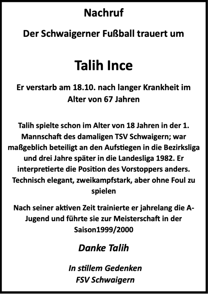 Der Schwaigerner Fußball trauert um Talih Ince